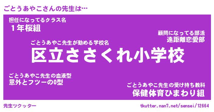| ヒーロー風カッコイイあだ名 | 『スーパーゴトウアヤコ』『銀牙騎士ゴト』 |