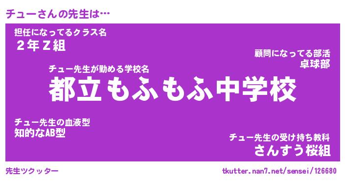 | ファンタジー風あだ名 | 『チュフェル』『エターナルチューー』 |