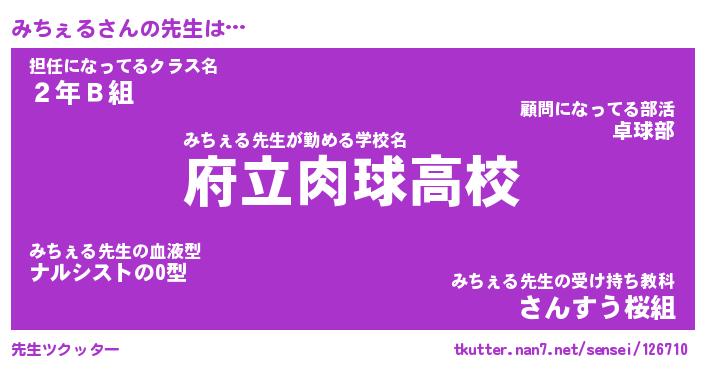 | 意味不明あだ名 | 『ペロリンみちぇる』『永久保存みちぇる』 |