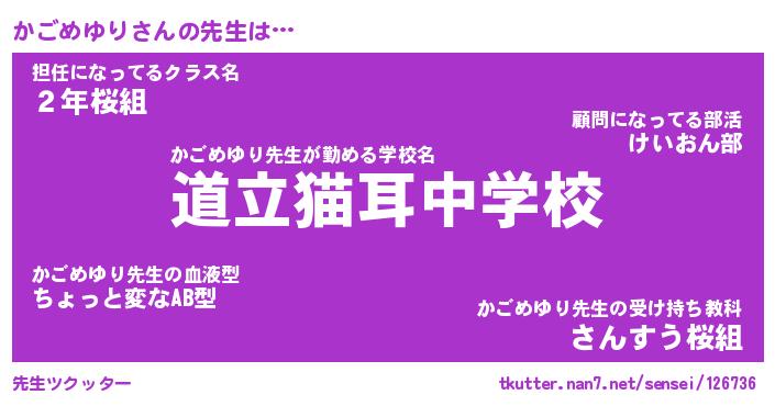 | ファンタジー風あだ名 | 『カゴフェル』『エターナルカゴメユリー』 |