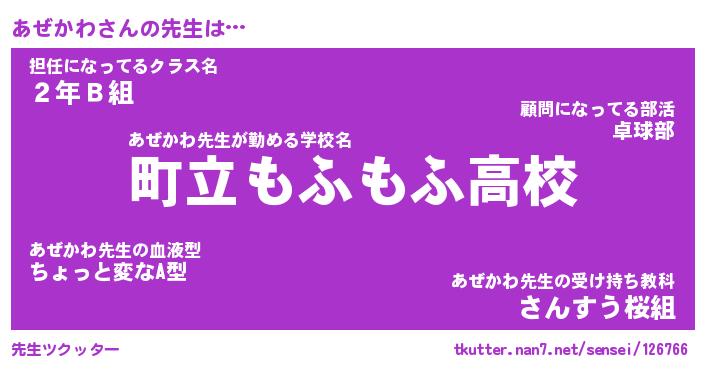 | 意味不明あだ名 | 『ペロリンあぜかわ』『永久保存あぜかわ』 |