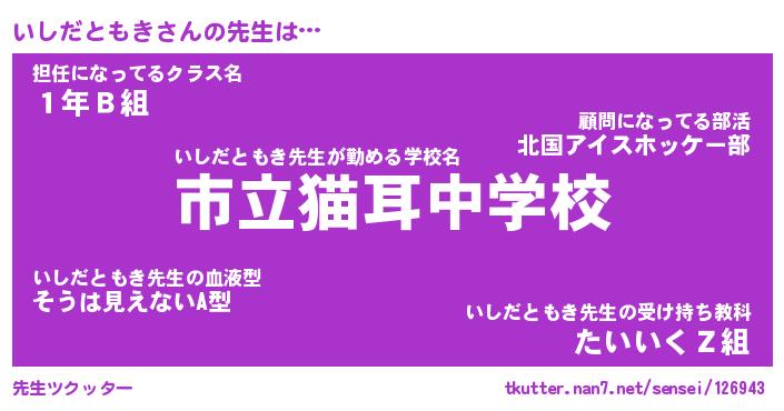 | ヘコむあだ名 | 『いしにー』『牛乳』『いし太郎』 |