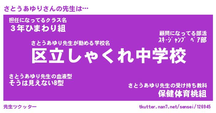 | 伝説のあだ名 | 『封印されしスナイパーさとうあゆり』 |