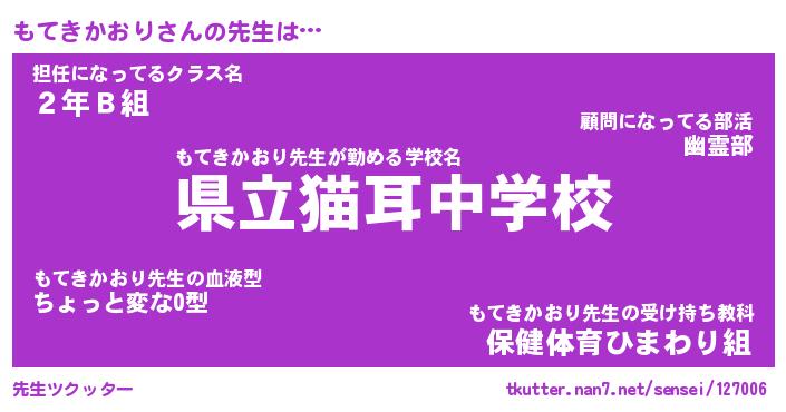 | ヒーロー風カッコイイあだ名 | 『スーパーモテキカオリ』『幻影騎士モテ』 |