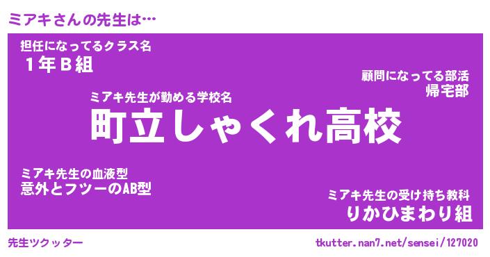 | 意味不明あだ名 | 『ペロリンミアキ』『ミアキフォーエバー』 |