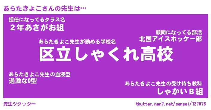 | 伝説のあだ名 | 『封印されしスナイパーあらたきよこ』 |