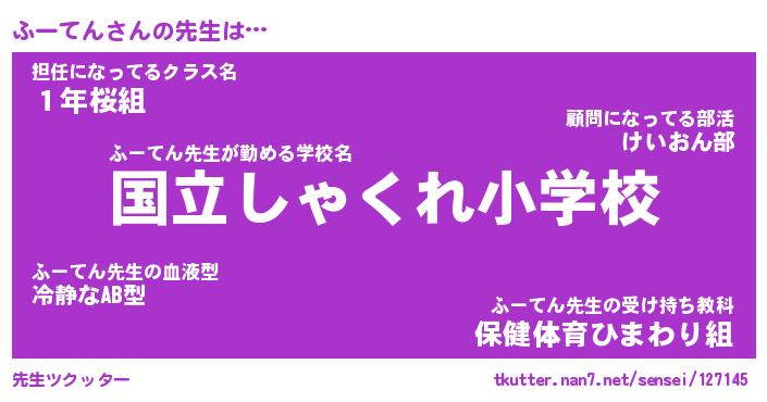 | 意味不明あだ名 | 『ペロリンふーてん』『永久保存ふーてん』 |