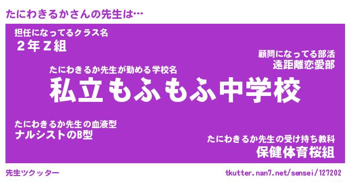 | 肩書あだ名 | 『たにわきるか店長』『たにわきるか担任』 |