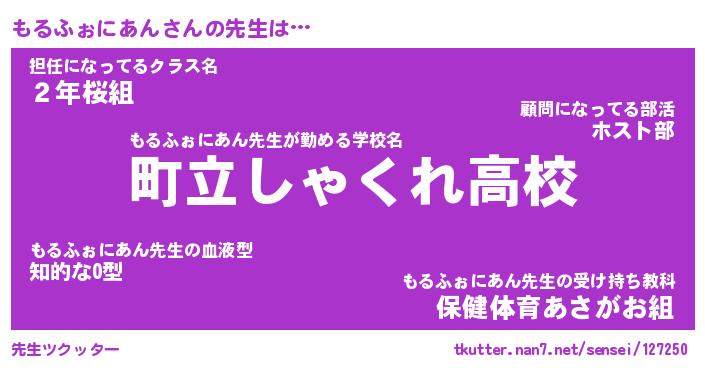 | 肩書あだ名 | 『もるふぉにあん御曹司』 |
