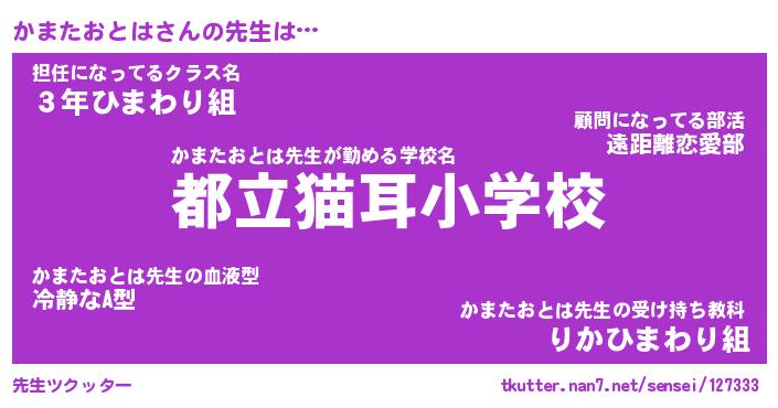 | ヒーロー風カッコイイあだ名 | 『スーパーカマタオトハ』『炎刃騎士カマ』 |