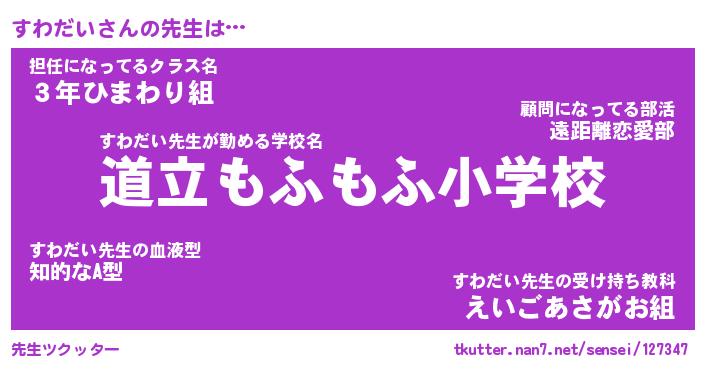 | 意味不明あだ名 | 『ペロリンすわだい』『永久保存すわだい』 |