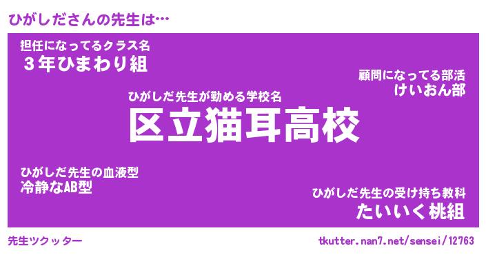 | ポケモン風あだ名 | 『ヒガチュウ』『ヒガシダネ』 |