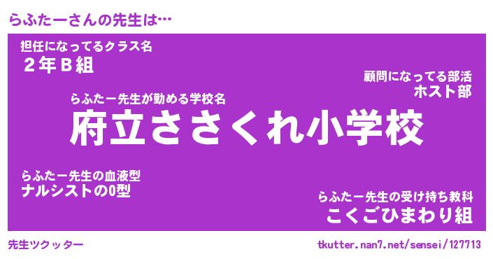 | 意味不明あだ名 | 『ペロリンらふたー』『永久保存らふたー』 |