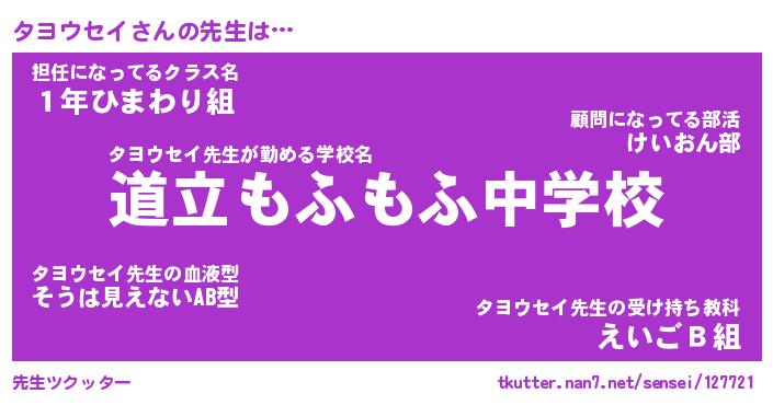 ファンタジー風あだ名 | 『タヨフェル』『エターナルタヨウセイー』 |