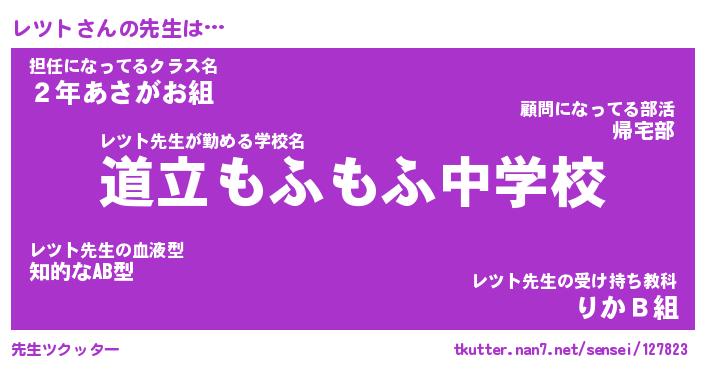 | 意味不明あだ名 | 『ペロリンレツト』『レツトフォーエバー』 |