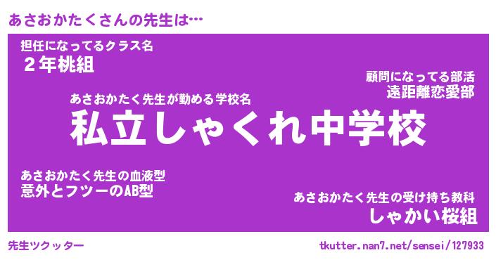 | ヒーロー風カッコイイあだ名 | 『スーパーアサオカタク』『幻影騎士アサ』 |