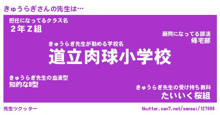 | ヘコむあだ名 | 『きゅふぇ~』『豆乳』『きゅっちょ』 |