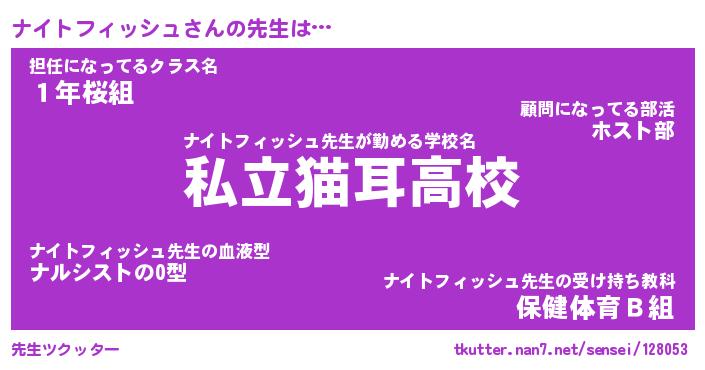 | 肩書あだ名 | 『ナイトフィッシュ社長』 |