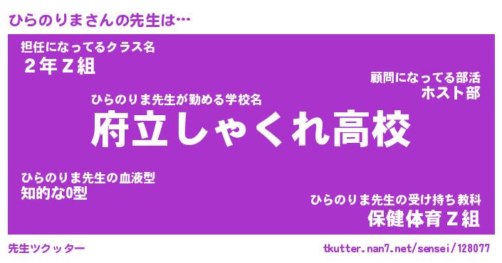 | ヒーロー風カッコイイあだ名 | 『スーパーヒラノリマ』『銀牙騎士ヒラ』 |