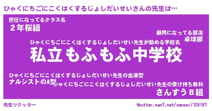 | 欧米人風あだ名 | 『マイケルひゃくにちごにこくはくするじょしだいせい』 |