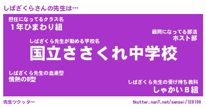| ファンタジー風あだ名 | 『シバフェル』『エターナルシバザクラー』 |