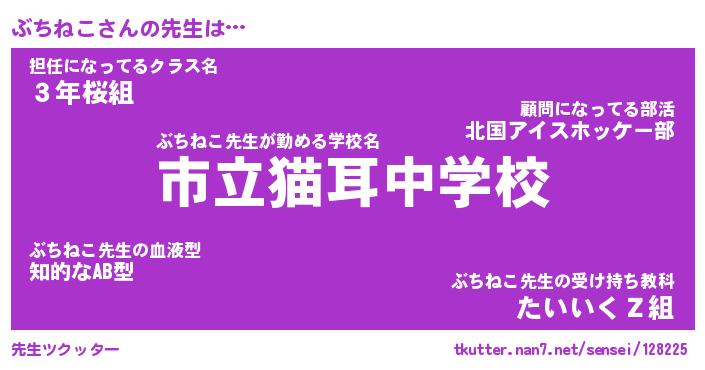 | 意味不明あだ名 | 『ペロリンぶちねこ』『永久保存ぶちねこ』 |