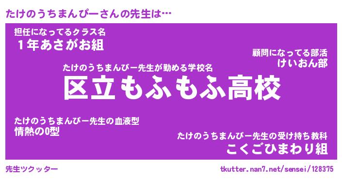 | 学校 | たけのうちまんぴー校長が勤める学校の名前『府立女子ムンムン大学』 |