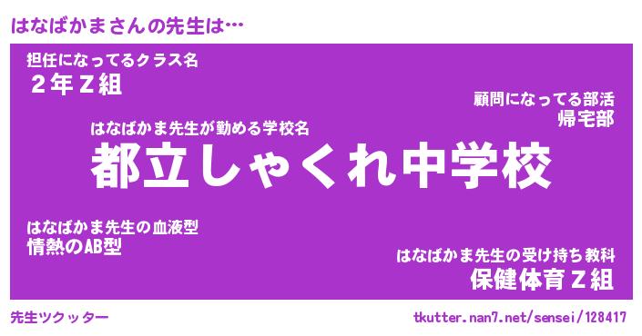 | ポケモン風あだ名 | 『ハナチュウ』『ハナバダネ』 |
