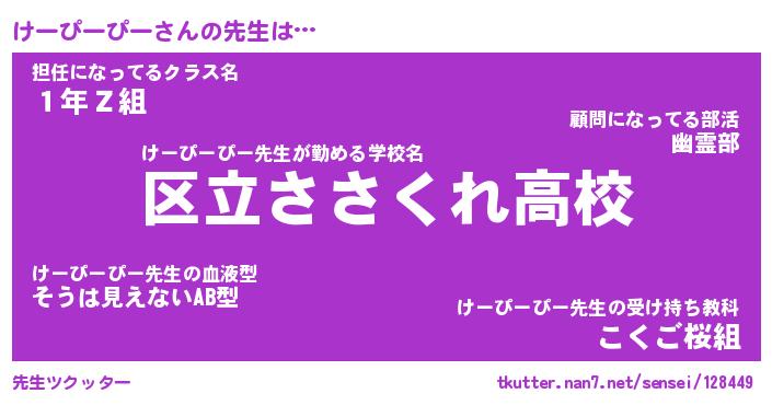 | ヒーロー風カッコイイあだ名 | 『スーパーケーピーピー』『暗黒騎士ケー』 |