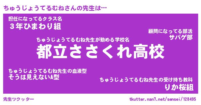 | 男性向けラノベタイトル風あだ名 | 『ちゅうじょうてるむねの憂鬱』 |