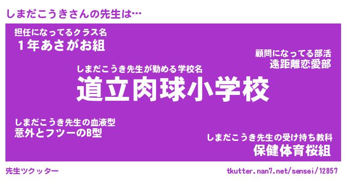 | ヒーロー風カッコイイあだ名 | 『スーパーシマダコウキ』『幻影騎士シマ』 |