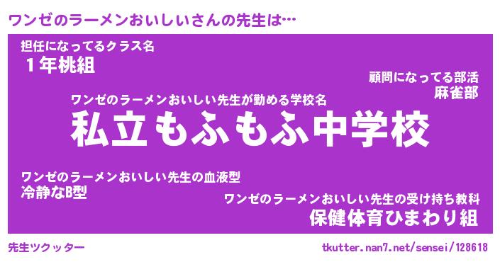 | 意味不明あだ名 | 『ペロリンワンゼのラーメンおいしい』 |