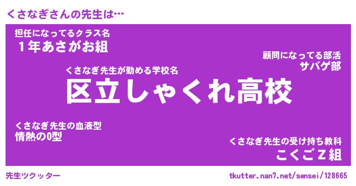 | 意味不明あだ名 | 『ペロリンくさなぎ』『永久保存くさなぎ』 |