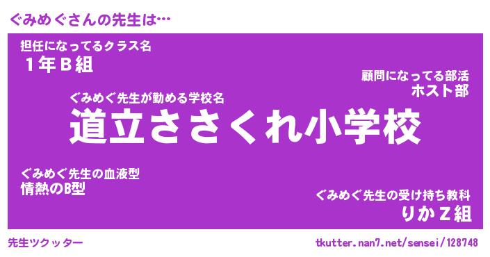 | 意味不明あだ名 | 『ペロリンぐみめぐ』『永久保存ぐみめぐ』 |