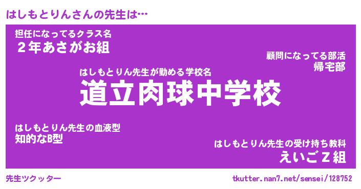 | ヒーロー風カッコイイあだ名 | 『スーパーハシモトリン』『銀牙騎士ハシ』 |