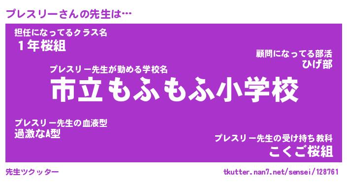 | 男性向けラノベタイトル風あだ名 | 『プレスリーの憂鬱』 |
