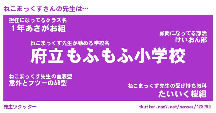 | ヘコむあだ名 | 『ねこにゅー』『酢こんぶ』 |