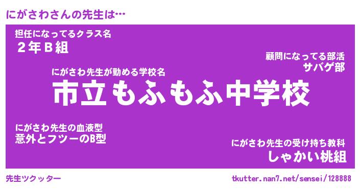 | 意味不明あだ名 | 『ペロリンにがさわ』『永久保存にがさわ』 |