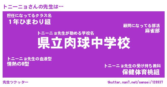 | ファンタジー風あだ名 | 『トニフェル』『エターナルトニーニョー』 |