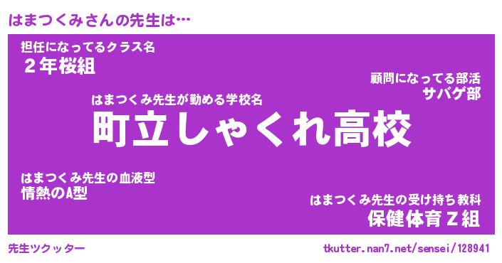 | ファンタジー風あだ名 | 『ハマフェル』『エターナルハマツクミー』 |