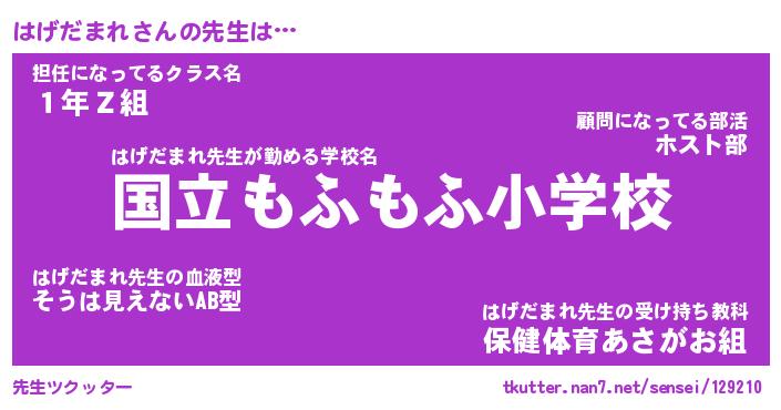 | ヘコむあだ名 | 『はげにゅー』『なまこ酢』『はげを』 |