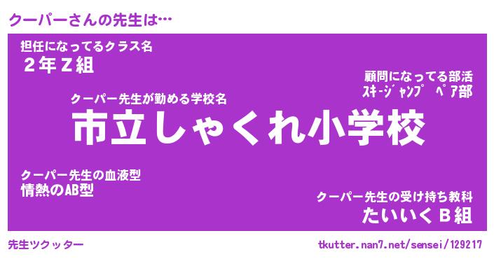| ポケモン風あだ名 | 『クーチュウ』『クーパダネ』 |