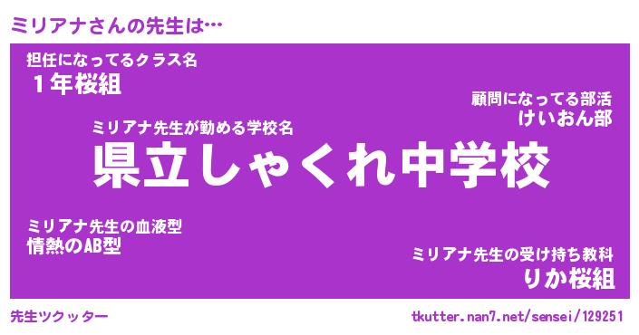 | 意味不明あだ名 | 『ペロリンミリアナ』『永久保存ミリアナ』 |