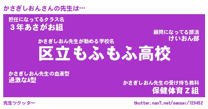 | 恥ずかしいあだ名 | 『プリティーかさぎしおん』『かさっちょ』 |