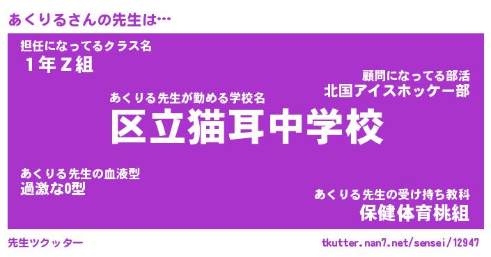 | ヘコむあだ名 | 『あくにー』『つくし』『あくぷりん』 |