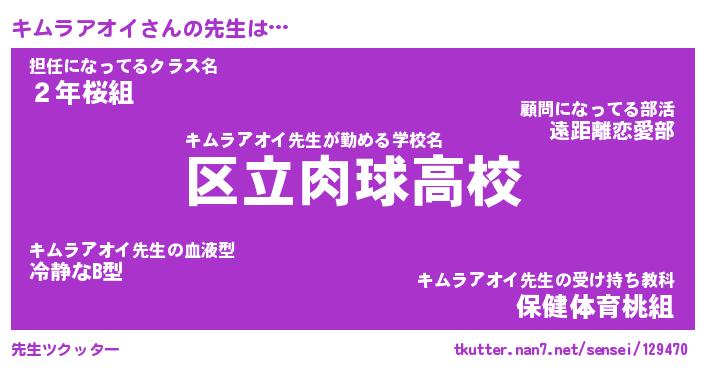 | ヒーロー風カッコイイあだ名 | 『スーパーキムラアオイ』『銀牙騎士キム』 |