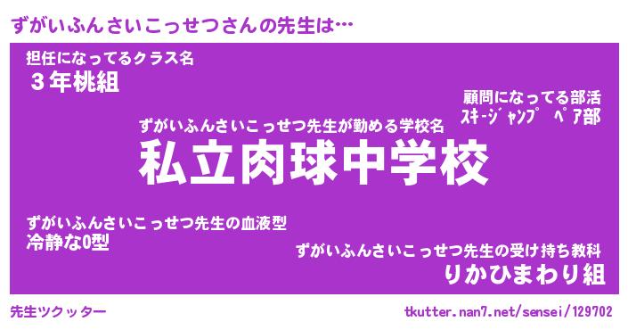 | 女子向けラノベタイトル風あだ名 | 『(仮)ずがいふんさいこっせつのやんごとなき事情』 |