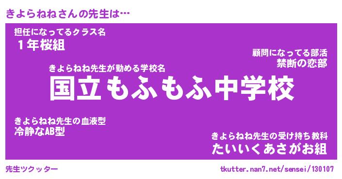 | 2回繰り返すあだ名 | 『きよきよ』『ききよよ』『うねうね』 |