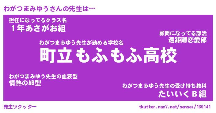 | ヒーロー風カッコイイあだ名 | 『スーパーワガツマミユウ』 |