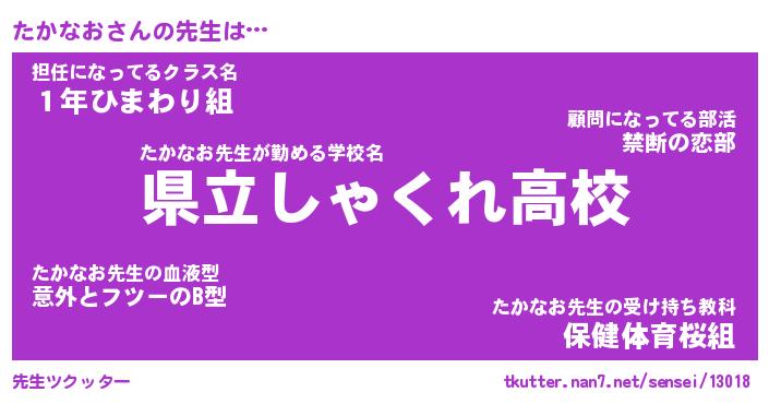 | 意味不明あだ名 | 『ペロリンたかなお』『永久保存たかなお』 |